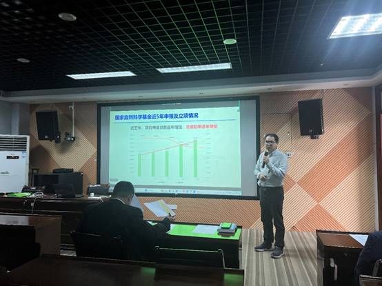 袁益辉副经理从申报数、立项数、资助率、全校排名、学科代码等多方面分析公司2025年基金申报情况,指出了公司存在的薄弱环节,并明确了2026年度的改进方向。他指出,基金申报是牵动公司科研发展全局的重要工作,全院教师要尽早谋划、认真准备、反复打磨、全力以赴!